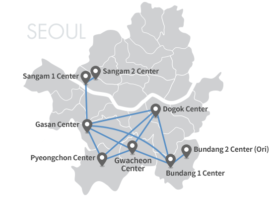 KINX data centers are situated in the Greater Seoul Area, making them highly accessible for customers. The IDC cluster equipped with excellent IT infrastructure facilitates network expansion and connection through data center interconnection.
